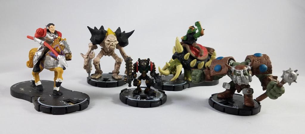 The game demonstrated was Mage Knight. In contrast to Warhammer, these miniatures were pre-painted and fully assembled. Furthermore, the only rules reference we had was a little cheat card that explained some of the miniatures’ special abilities. All other information was cleverly designed into the now famous”Clix” base on the mini. As the figure was damaged it battle, the base dial was “clicked” and the stats changed.